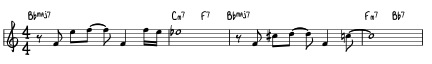 It’s easy to get creative with this method. These are just a couple of patterns based off the first four bars. You could easily make many more with just those opening notes. After you’ve made some progress on these patterns, move on to the next four bars. By the time you’ve worked your way through the head you’ll have spent a good deal of time working on making fluid connections!