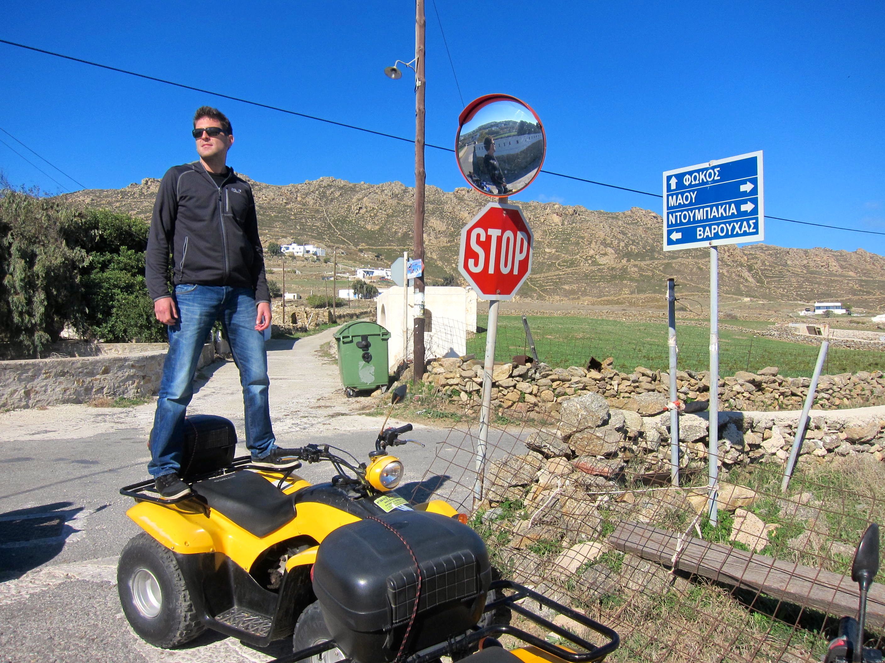 Renting atvs in Mykonos is super fun and super cheap. For 20 euros a day and a couple of liters of gas you can get an atv for the entire day and ride all over the island.