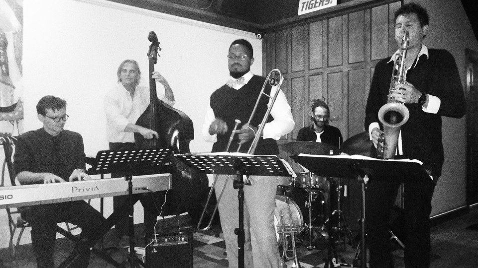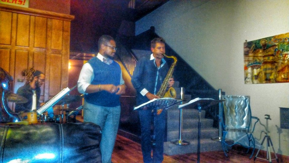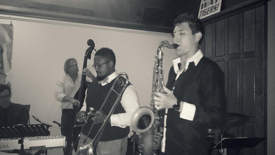 Here are some photos from the last Bad Guys gig at Gallery 121 before I left town. This one was a lot of fun. We had a pretty hilarious mix up with the pianist at the beginning. I had never met the guy that I hired to play this date so i didn’t really think much of it when there was a dude I didn’t know setting up his keyboard before the start. It turned out that someone else hired him for a different gig and told him the wrong date so he wasn’t supposed to be there at all. I felt bad for him when the guy I hired showed up but it was alright in the end.