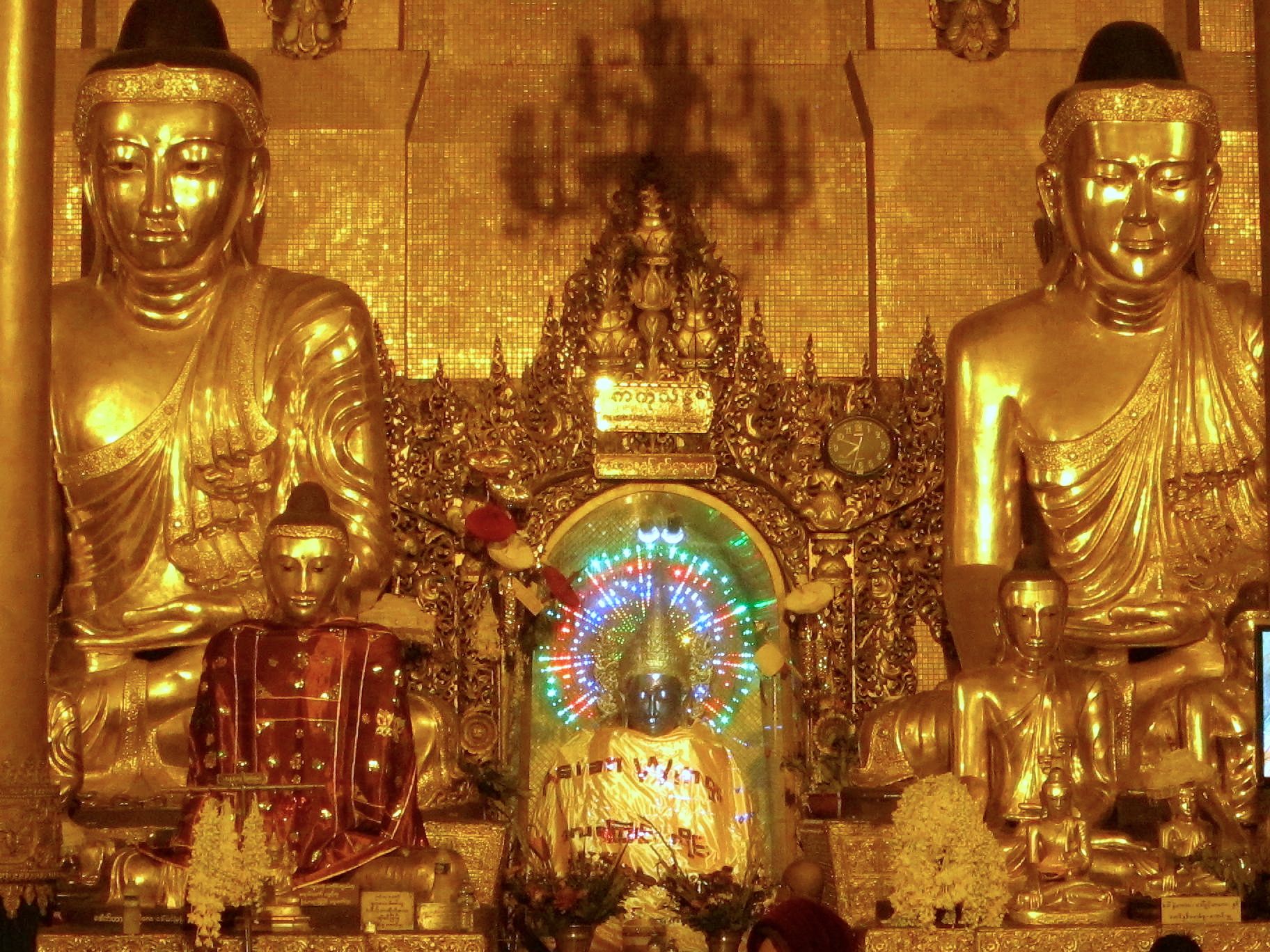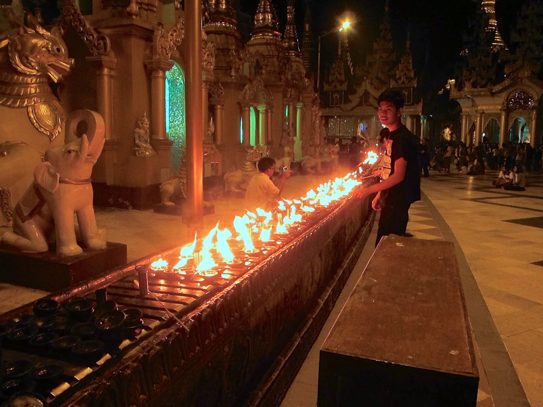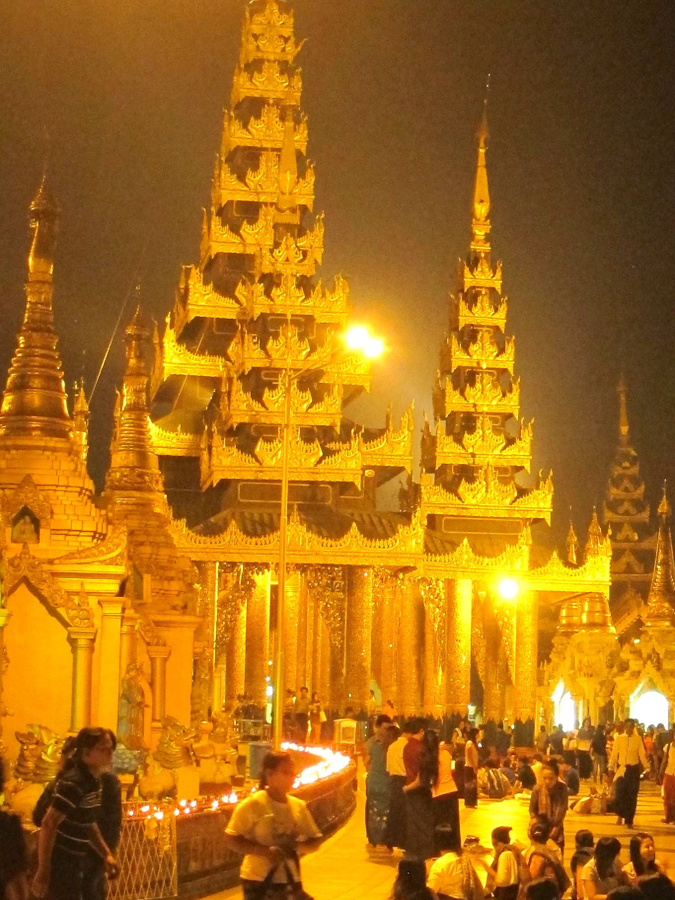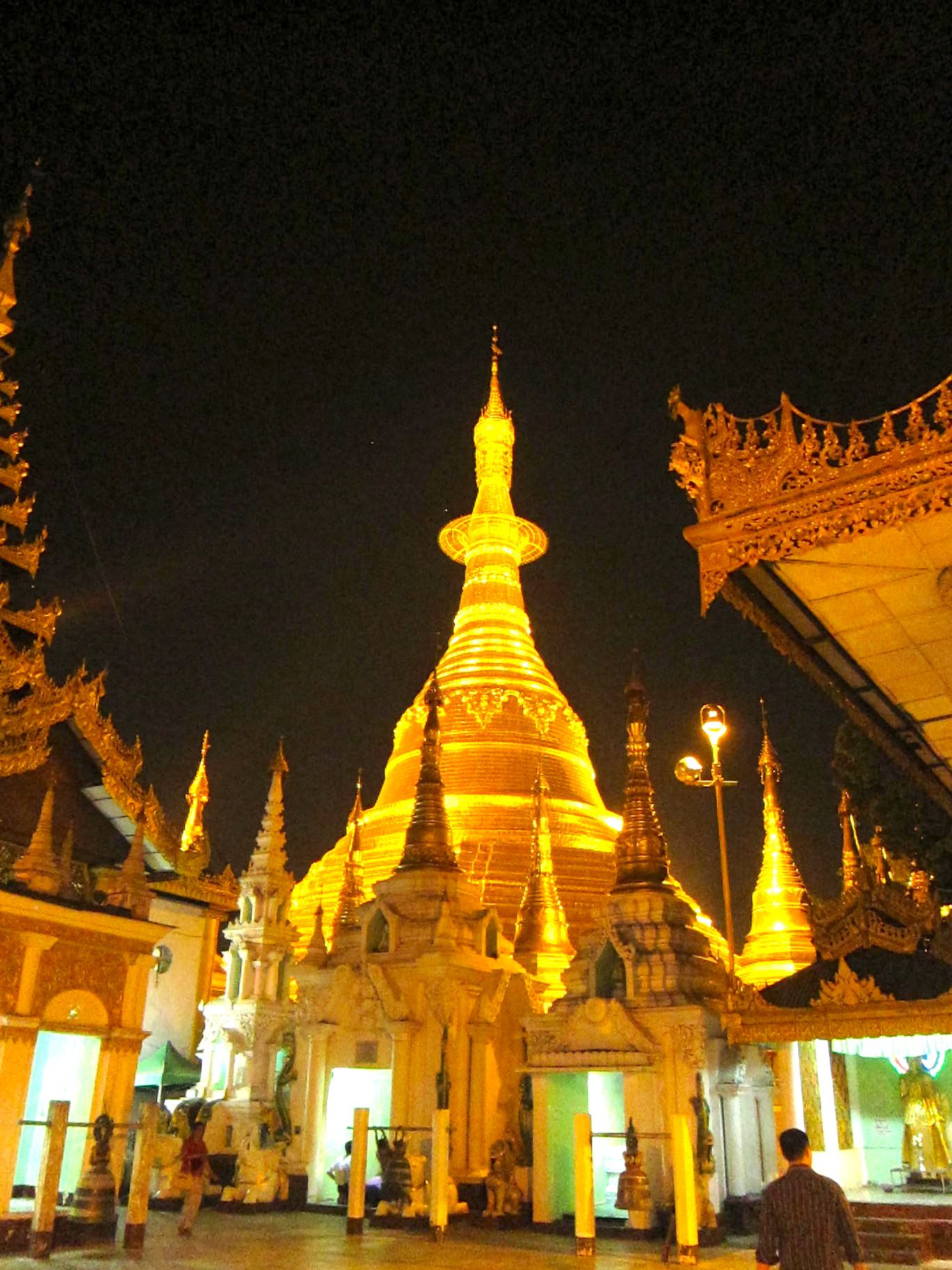 The Shwedagon Pagoda is the centerpiece of Yangon. It’s shiny golden bell rises above the city and is visible almost anywhere in the city. Inside its walls there are many different depictions of different Buddhas and many different shrines for people to meditate at. There are hundreds of spires and really impressive architecture. I love the mixture of gold and neon lights. I was there at night, which was great because the whole place is lit up, which makes the gold look spectacular. Also, they say that the marble ground gets extremely hot during the day, which is a problem since everyone walks around barefoot inside the pagoda.