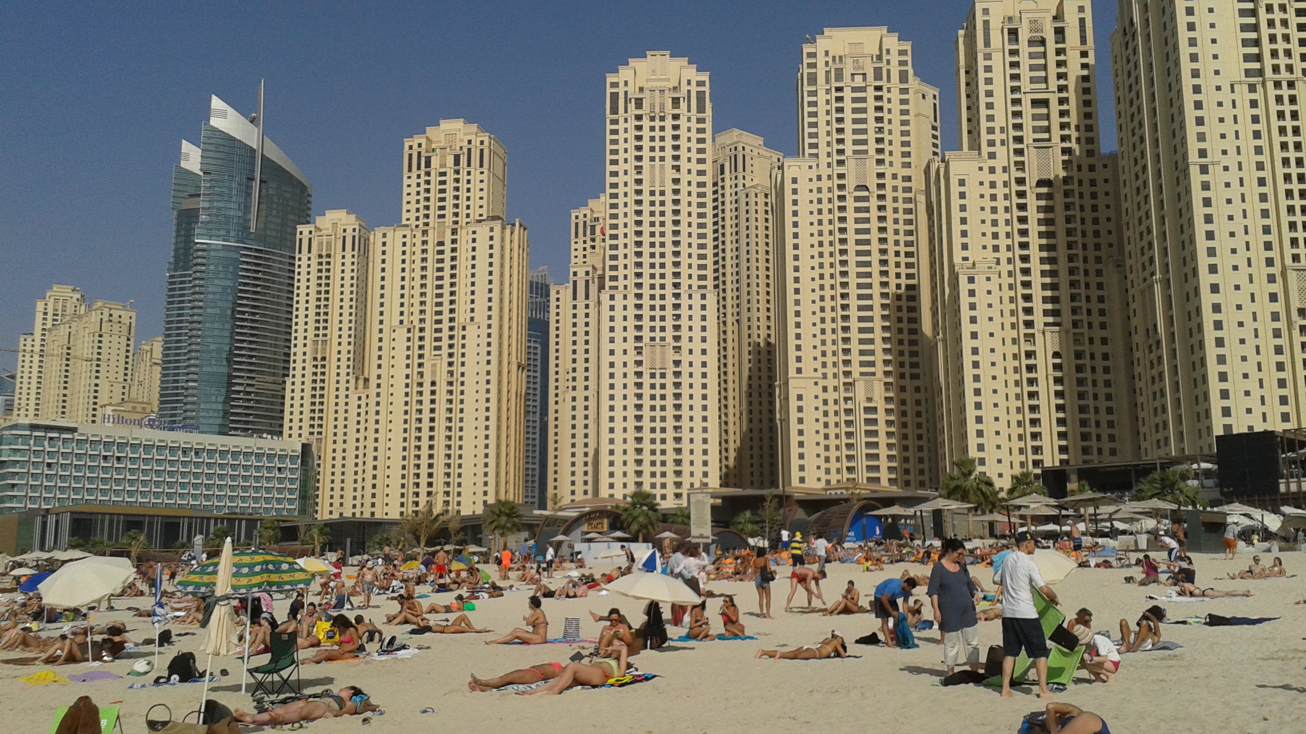 The first area of the city that I explored was Jumeriah beach. Like the entire city, this area is extremely modern. The beach is completely lined with high-rise buildings and luxury shops on the lower levels. The beach itself is wide and packed with many different peoples. There are a lot of people in western attire in this area mixing with those in traditional Arabic garb. It’s quite striking to see people in tiny, European-style swimwear next to women swimming in full burkas. This is not an exaggeration, I actually saw several woman in the water fully covered with burkas. These sorts of scenes are one of the main reasons that Dubai is so interesting, and there is no shortage of them.