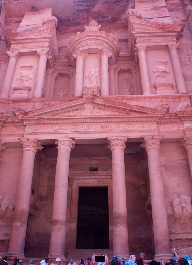 The Treasury. Probably the most iconic image at Petra. The top is riddled with bullet holes where people have shot at it, hoping to break it open because they believed the holy grail was inside.