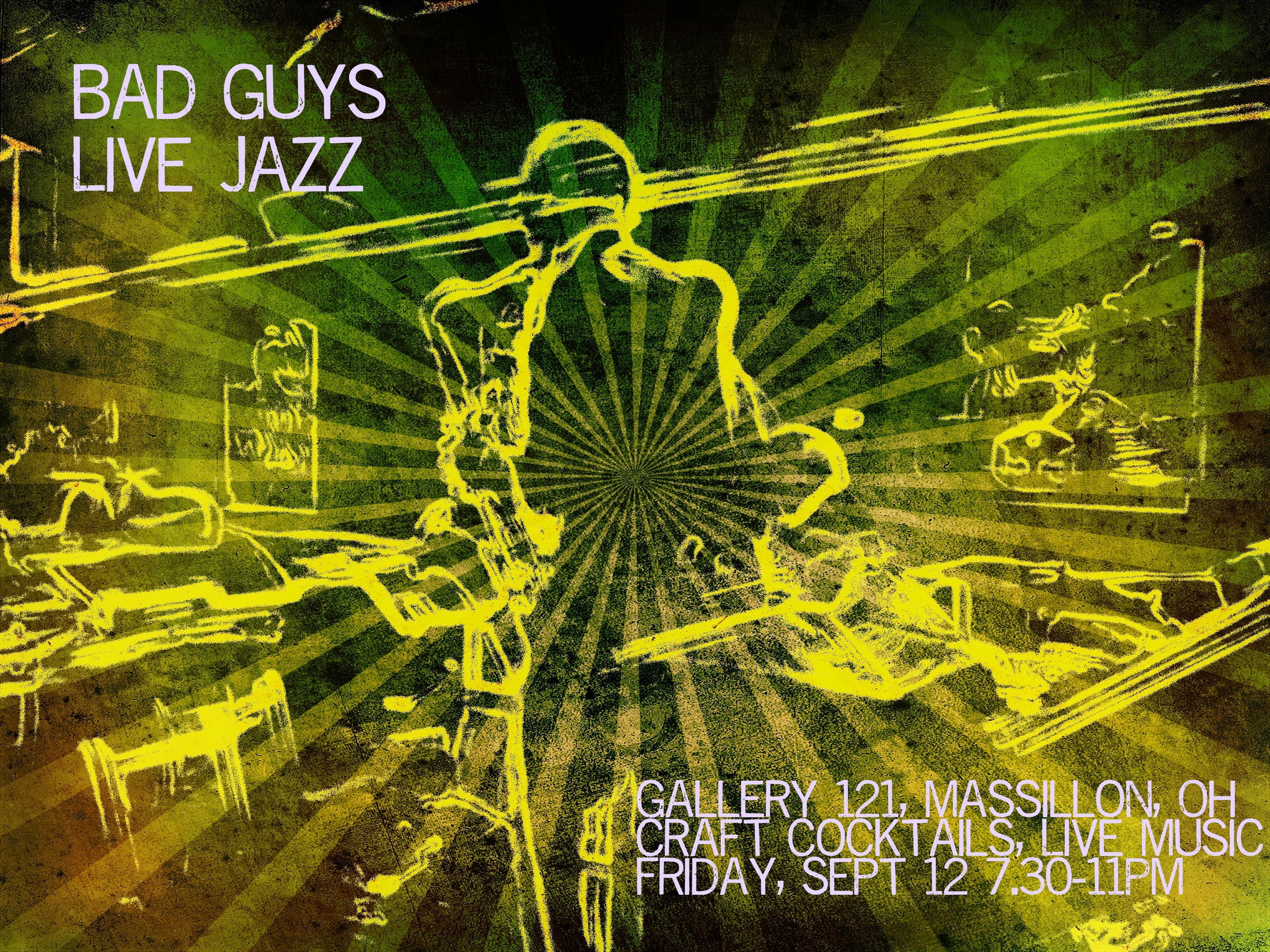 - 8.29.14 w/Bad Guys – Jazz Quartet @ Gallery 121 in downtown Massillon 7.30-11.00pm